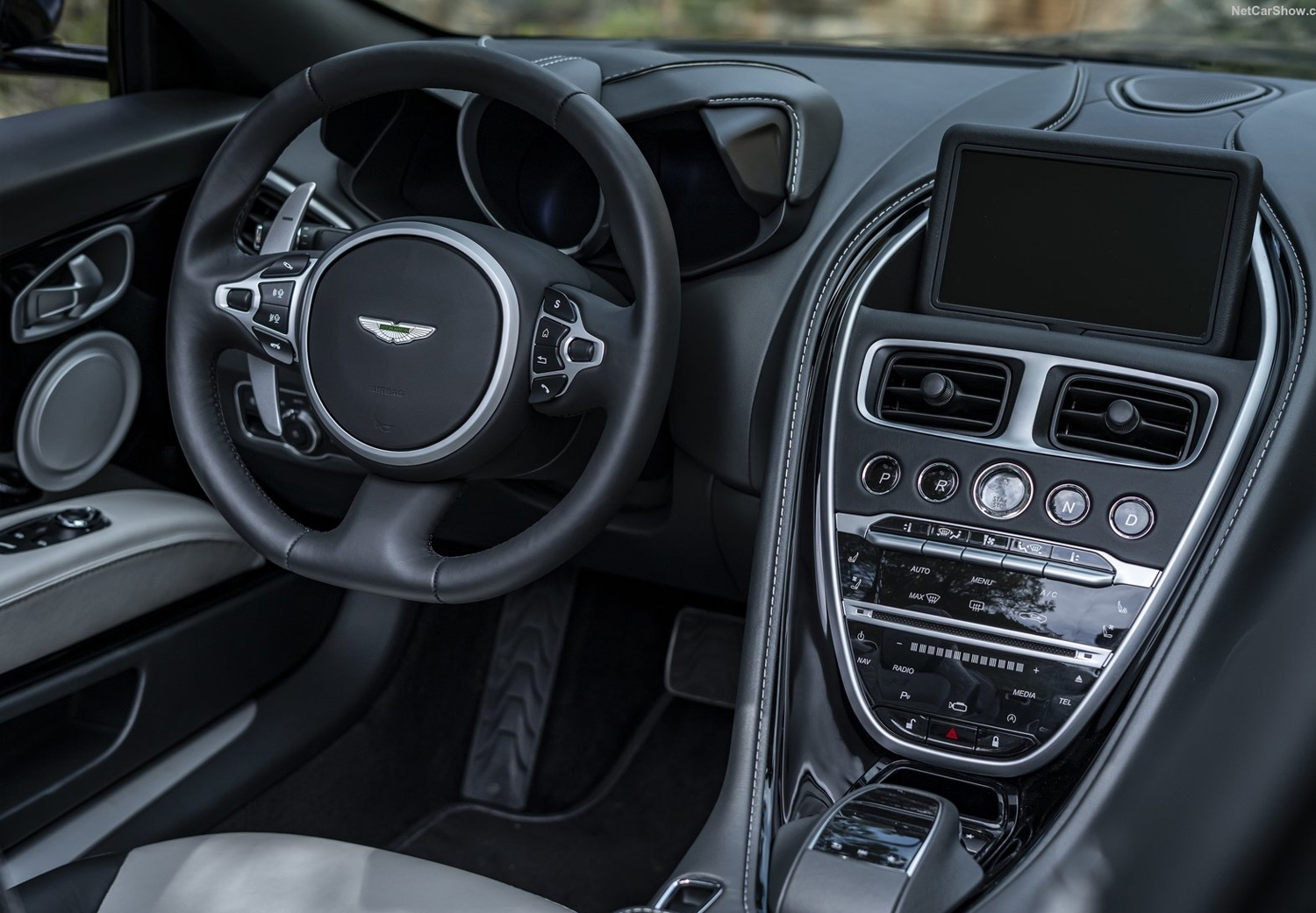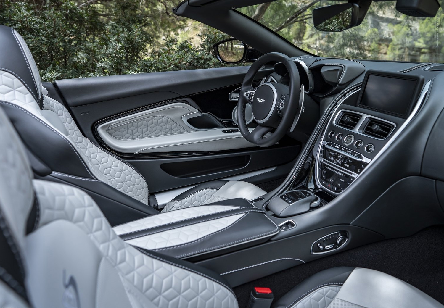 Inside, the Aston Martin DBS design marries sporty ergonomics with passenger comfort. Even with their tapering rooflines, both cars effortlessly house up to 5 occupants. In front of the driver, the continuous horizontal lines of the dash hold a centre instrument console and touch screen panel that just seem to float. And front Sport seats, available in leather or leather-free, give optimum support, even when cornering at speed.